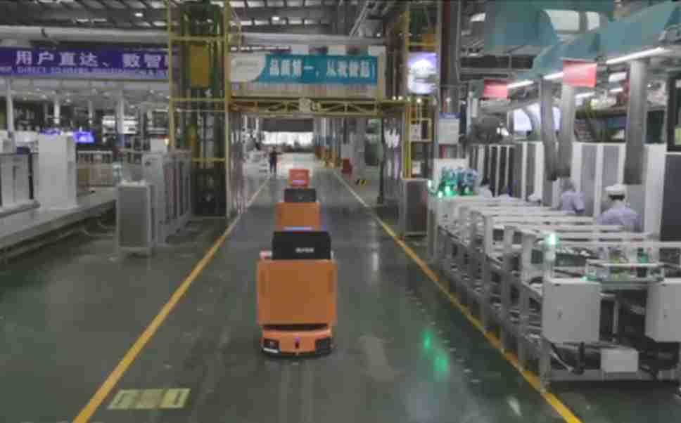 为车载冰箱物流配送打造的智能解决方案,,包含产中物流通过潜伏举升AMR搬运至线边,,,产后成品物流智能仓储,,流程包含产中物流智能齐套入库,,,,线边安灯叫料AMR智能配送至线边,,,成品入库、、、出库,,,,通过无人堆高车机器人,,,,智能仓储管理替代人工作业管理,,,,实现更高存储、、、、更高效率、、、、更具柔性化的解决方案。。